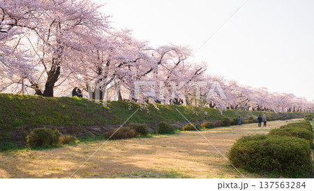 角館的櫻花,曳內川沿岸的一排櫻花樹