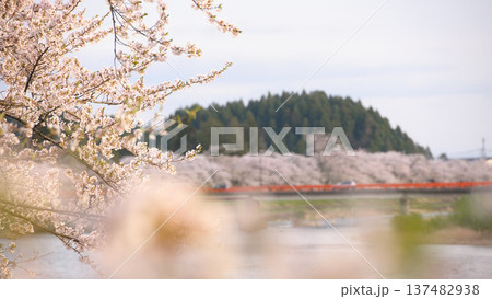 角館市檜木內川兩岸櫻花盛開,構成了一幅春意盎然的河畔美景。