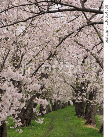 春天,角館市檜木內河濱公園的河邊出現了一條櫻花隧道。