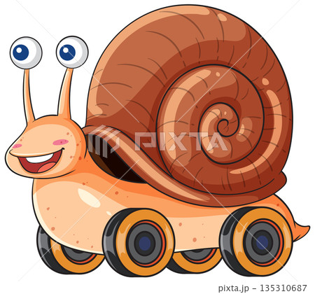 Cartoon Snail with Wheels and Spiral Shell Illustration