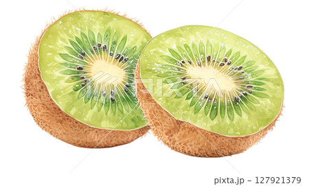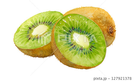 Ripe kiwi fruit and half kiwi fruit isolated on white background