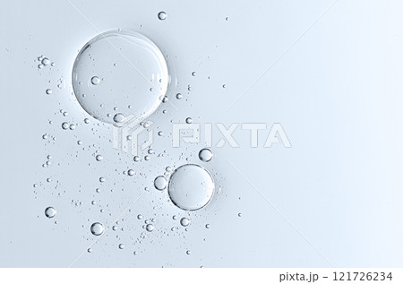 The texture of a body serum or cosmetic oil with bubbles. Liquid skin care product. Copy space.