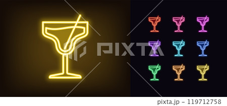 Outline neon cocktail icon set. Glowing neon cocktail glass with beverage and straw, alcohol drinks menu. Margarita cocktail, drinks bar, relax party, alcohol beverage, cheer and vacation. Vector icon