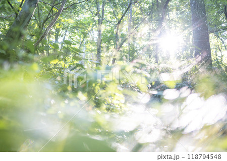 森林的黎明,光線,新鮮的綠色,生態形象(奧大山)