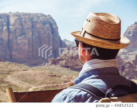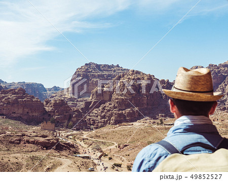 從約旦的佩特拉廢墟尋求看到的El Hazune