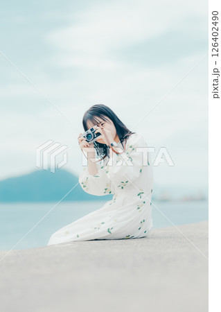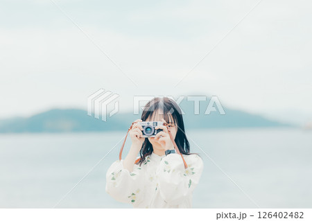 年輕女子乘船仰望藍天,夏季旅遊之旅