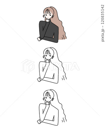 插圖集上身姿勢變化的女人穿著連帽衫的面部表情