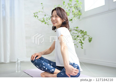 打瑜伽的中年婦女