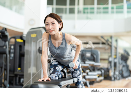 一位中年女性正在健身房鍛鍊。照片由幕張萬麗24運動俱樂部及三溫暖水療中心提供。