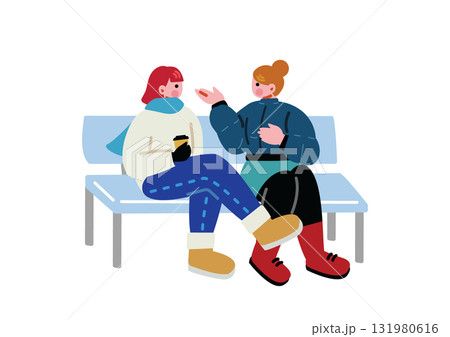 冬天在公園聊天的女孩們