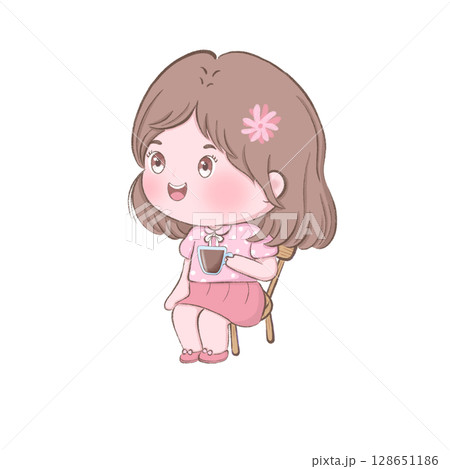 cute girl with coffee clipart in pink dress cartoon style flat design for children artwork