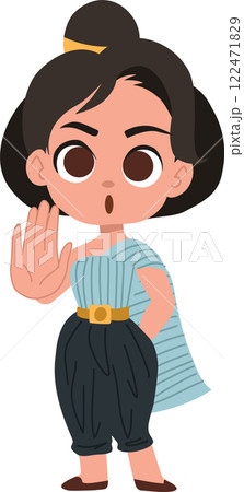 adorable thai girl wearing traditional dress making a hand stop gesture