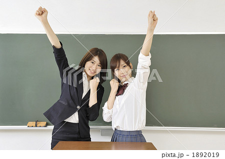 對補習班考試成績感到滿意的女學生 高中生 初中生