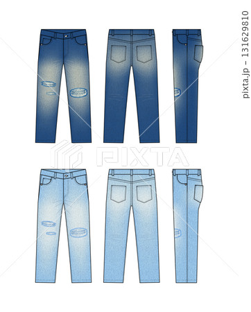 損壞的牛仔復古牛仔褲向量模板插圖