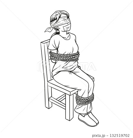 Hostage or female kidnapping tied by rope