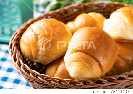 早餐桌上擺放著熱騰騰、新鮮出爐的奶油麵包卷