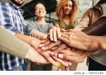 Group of friends use mobile phone together to view photos, videos or search Internet.
