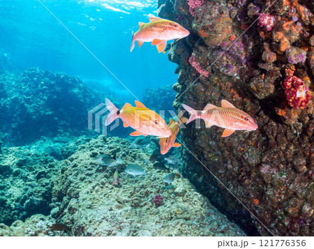 美麗的紅姬路、蓬萊姬路(棘科)等群。 靜岡縣伊豆半島加茂郡南伊豆町中木埼浜