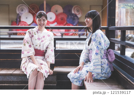 兩名身著浴衣的年輕女子泡腳【與柴田市電影委員會合作拍攝】