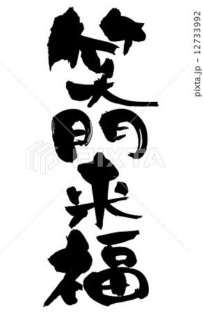手寫的[Shoumon Raifuku]手寫筆刷材料是福庫來到墨水笑門的矢量插圖字符。