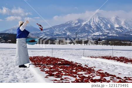 冬季陽光明媚的日子,從妙高高原的伊莫里池看到的妙高山(妙高市)