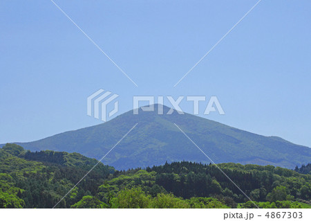 美麗的圓錐形狀的姬神山,北上山脈的獨立峰 藍山、天空和雲彩 藍天和山脈就像東山魁夷的畫