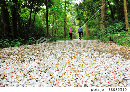 油桐花,落下,鄉間小路,森林,花,花瓣,開花,植物,飄,特別的,人,騎車