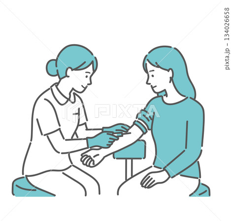 護士為女性抽血的插圖(手臂,健康檢查)