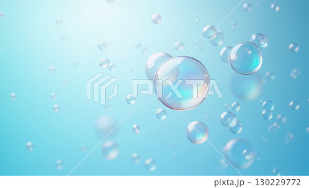 藍色背景上漂浮著透明氣泡的美麗保濕圖像
