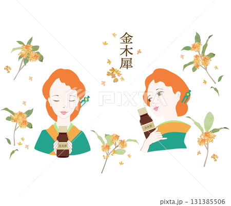 穿著和服的女子手捧著桂花精油,桂花精油,香薰,日式精油