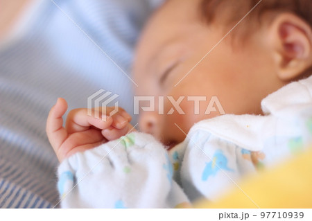 2個月大的可愛寶寶小指朝上睡覺