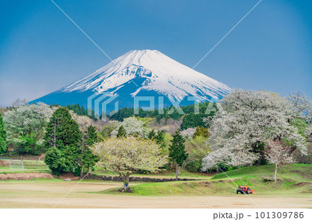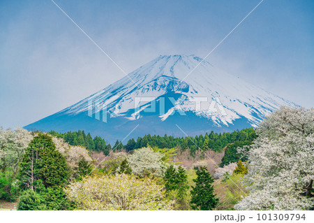 (靜岡縣)裾野全景路沿線的大島櫻花和富士山