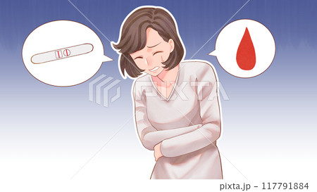 一名患有異常出血/化學流產的婦女的插圖,有背景、部落格大小