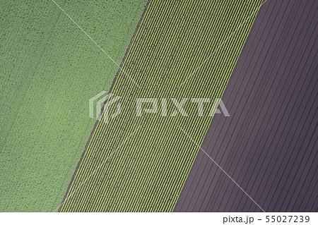 拍攝在北海道綾部町剛剛發芽的紅豆田的景觀