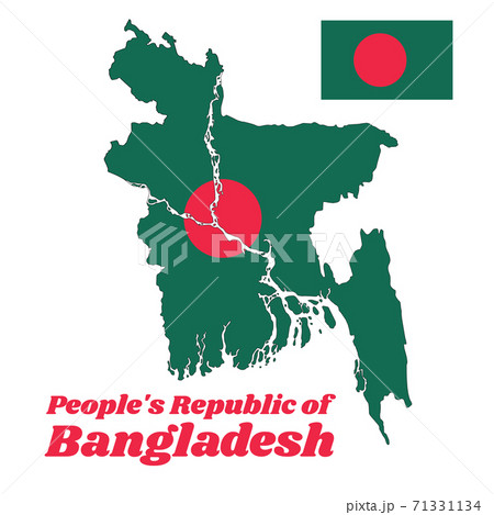 Map outline and flag of Bangladesh, a red disc on green field