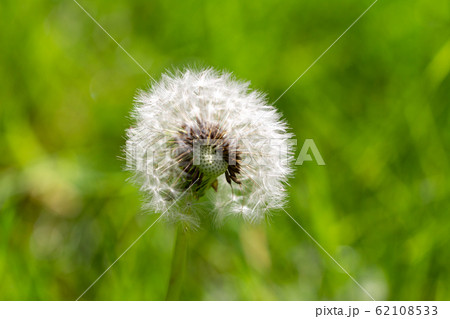一個小孩子在新鮮的春日在綠地裡將蒲公英孢子吹到風中的風景