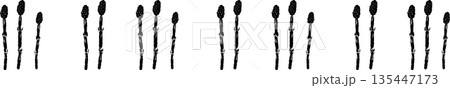 手繪單色插圖,描繪了春日田野中生長的可愛馬尾草。