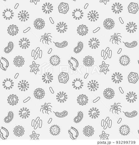 Bacteria vector minimal seamless pattern in thin line style