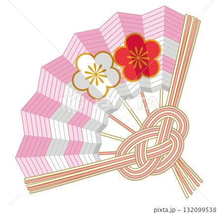 美麗的日本梅花圖案折扇 mizuhiki_慶祝新年裝飾向量插圖