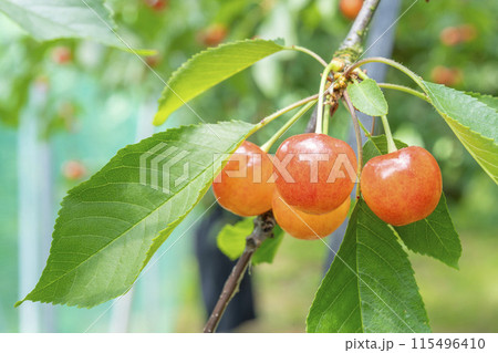 紅成熟的櫻桃(佐藤錦) 櫻桃採摘 山形縣東根市