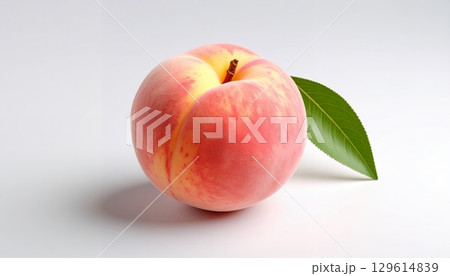 白色背景上綠葉的逼真桃子