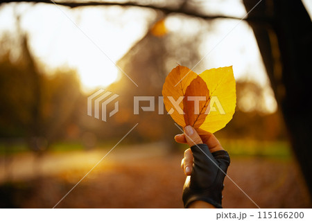 Cheerful Autumn Fitness: Woman with Yellow Leaves