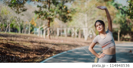 Cheerful Woman in Orange Activewear, Wrist Stretch