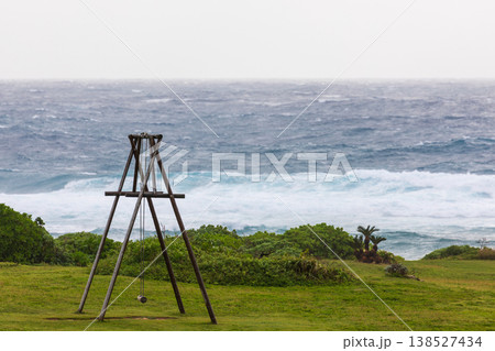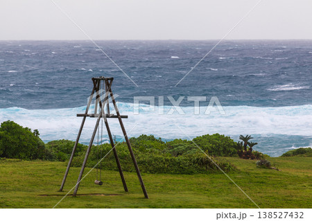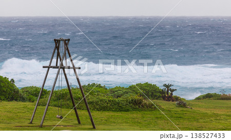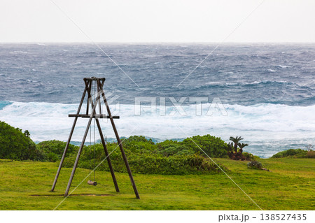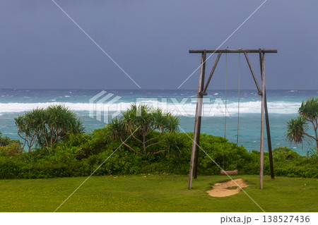 沖繩伊計島海邊的孤獨木製鞦韆