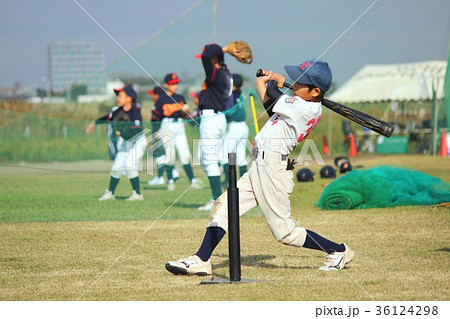棒球男孩擊球在比賽