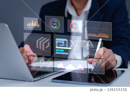 Intelligence and business analytics with key performance indicators dashboard concept.StartUp Programming as Fintech concept.Business team meeting. Photo professional investor at office.