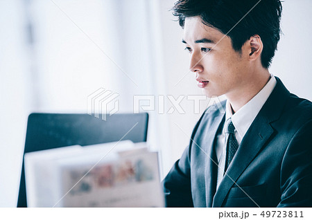 讀一張報紙的上司人,當朝向在窗口的一個位子的個人計算機時