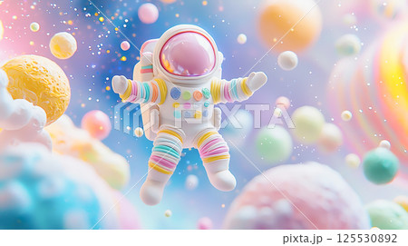 太空人漂浮在太空中的彩色夢幻 3D 插圖
