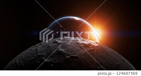 太空中的月亮、地球和太陽 - 人工智慧生成的圖像