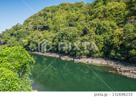 京都府宇治市宇治川、白二橋、舊靜川發電廠舊址的宇治川新綠風光